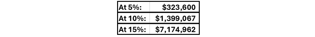 Hypothetical Example of the Potential Effect of Return: Start with $2,500 and save/invest $200 per month for 40 years: